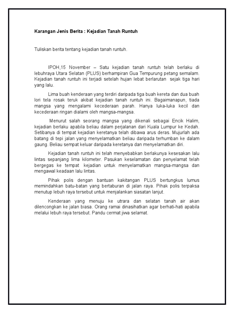 Contoh Karangan Berita Kemalangan Jalan Raya Tahun 5 Otosection